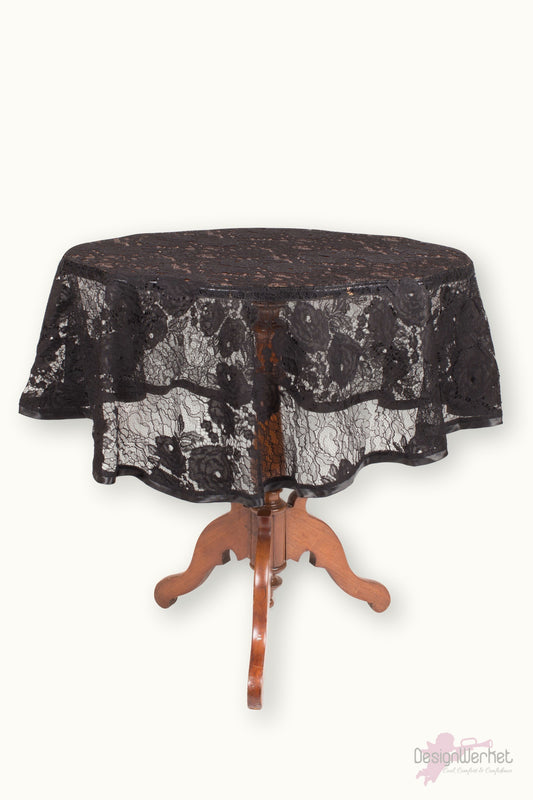 EMPOBERGET Black Luxurious Lace Tablecloth – 120 x 120 cm