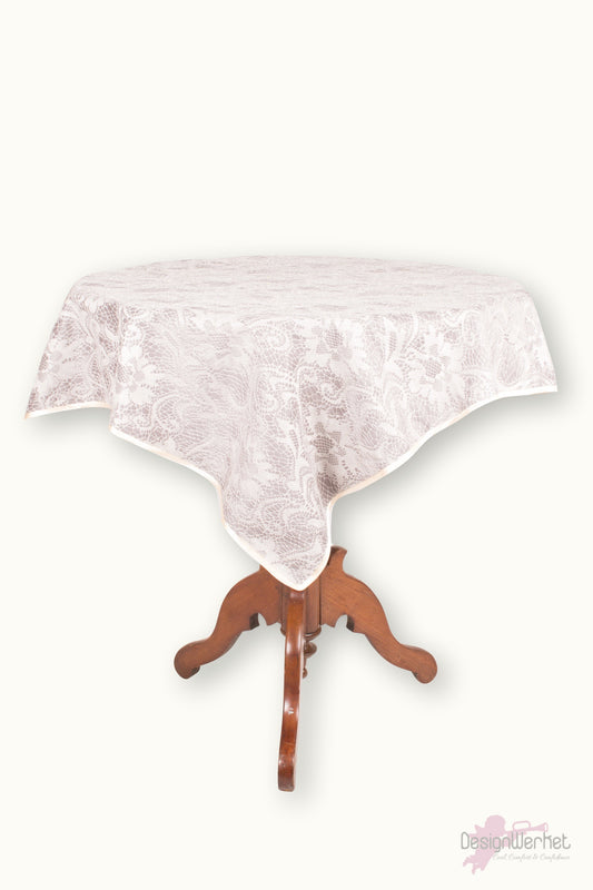 EMPOBERGET Taupe/Cream Luxurious Lace Tablecloth – 120 x 120 cm