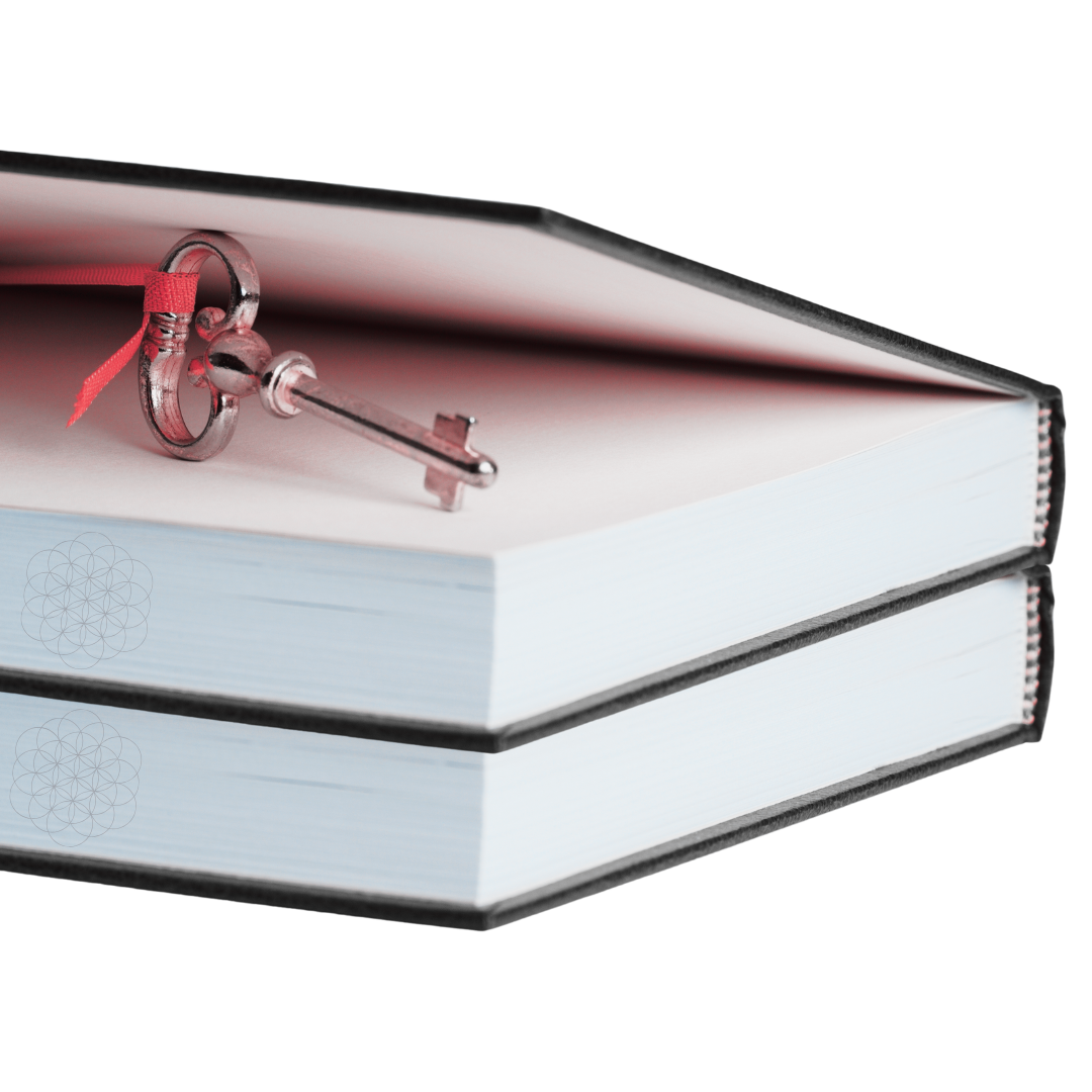 Här får du två unika inbundna böcker, utvalda med omsorg för att öppna nya tankebanor och tända inre eldar. Innehållet varierar, men röda tråden är tydlig: transformation, djup, klarhet.